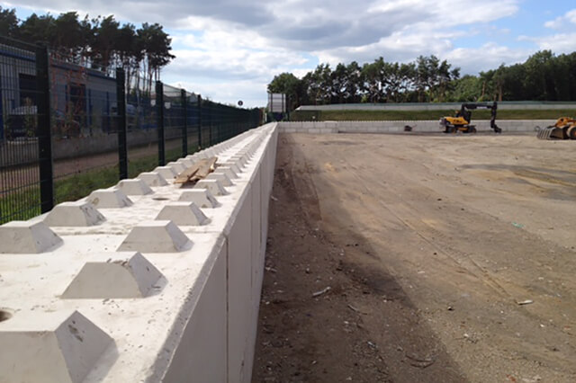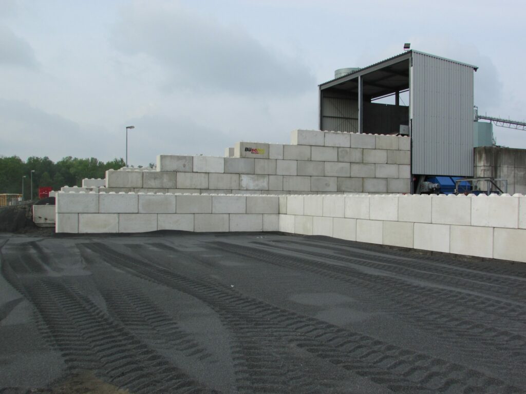 Grenz- oder auch Trennwände aus Büscher®Blöcken eignen sich hervorragend für den schnellen Auf- und Abbau von Stützwänden, Lärmschutzwänden und beispielsweise Schallschutzmauern, von Wegbegrenzungen oder dem Anfahrschutz. Die stapelbaren Beton Blöcke werden direkt an ihren Hebevorrichtungen angehoben und ohne Befestigungsmaterial aufeinander gelegt. Standfest, massiv, sicher.